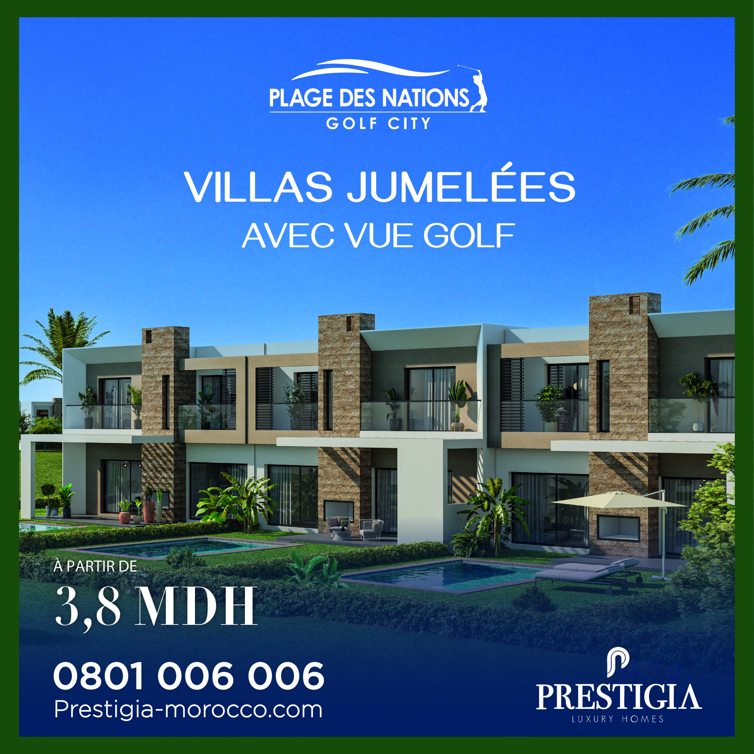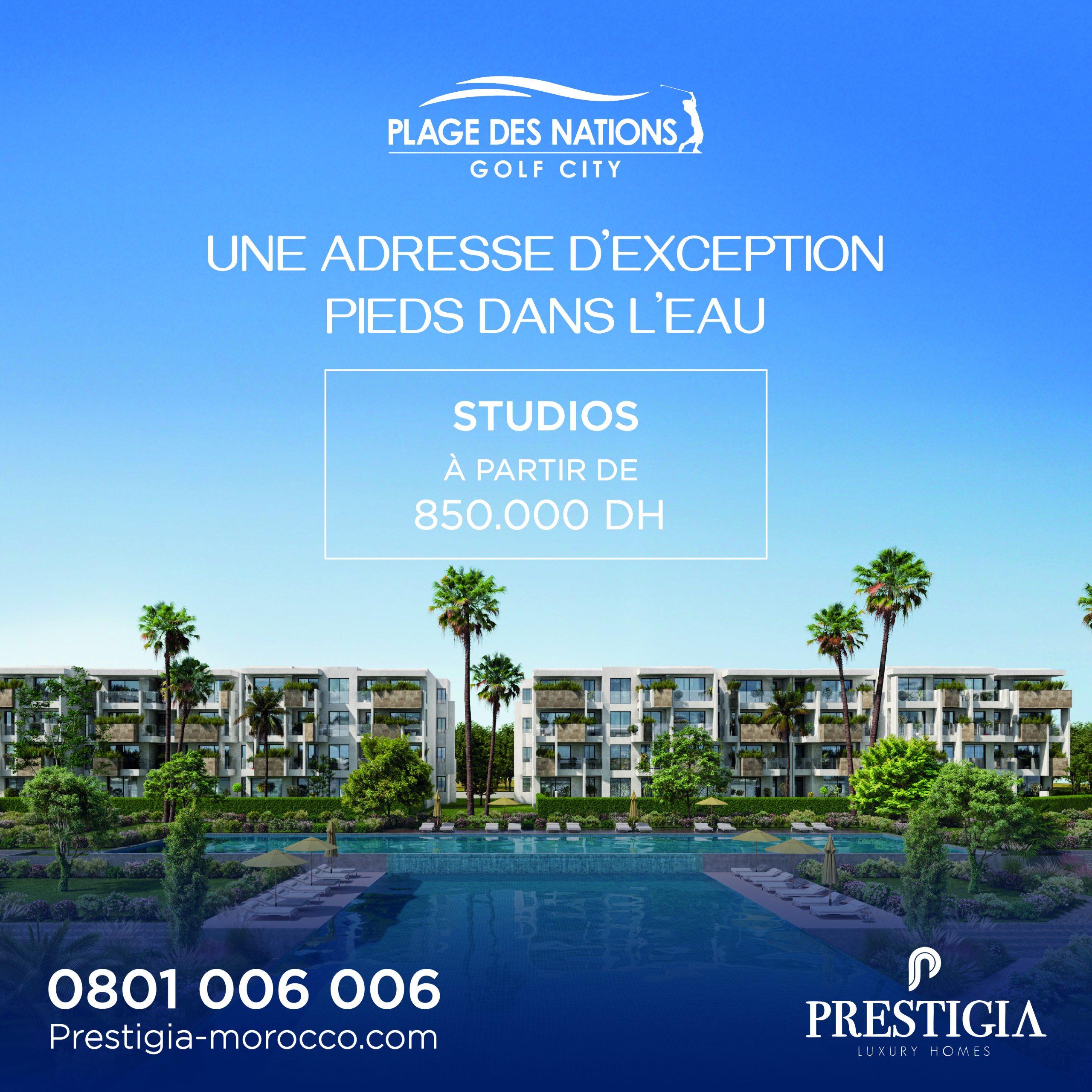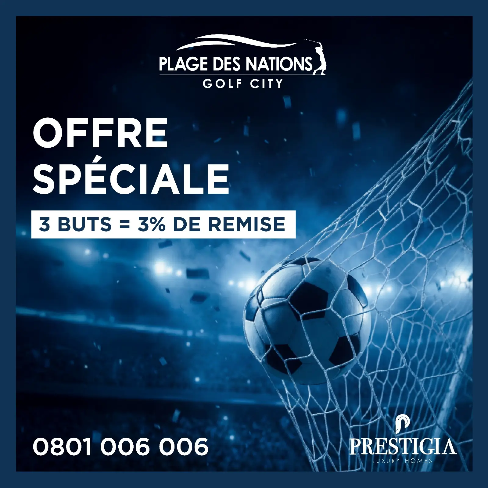 Pour célébrer les 3 buts du Maroc, Plage des Nations Golf City, signé Prestigia, vous offre 3% de remise exceptionnelle sur l’achat de studios, appartements ou villas. Offre limitée dans le temps.